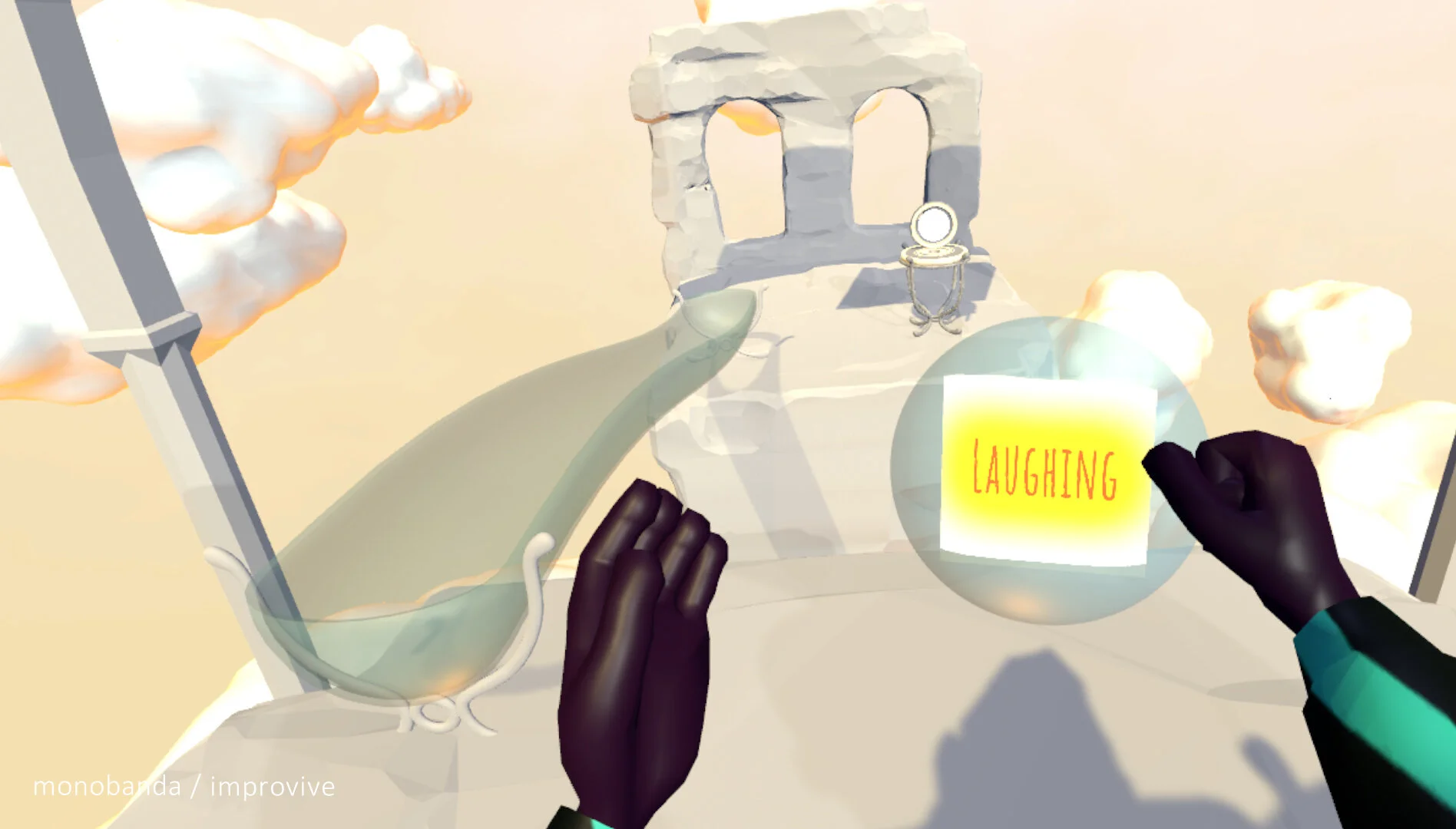 Creating emergent play or performative spaces stimulates players to play with their virtual body in an intuitive and fun way. We realised that this is exactly Monobanda’s specialty: reward the act of doing instead of only rewarding success. As a result, we got rid of all the game rules and designed an open space to experiment with the human body and self expression. So, instead of forcing a specific player’s behaviour by rules, we gave players the opportunity to experiment. We learnt that it is important to put trust into the players and their own inventiveness. Instead of forcing them to do what you want them to do, we should create situations that fluently reward a multitude and variety of actions.