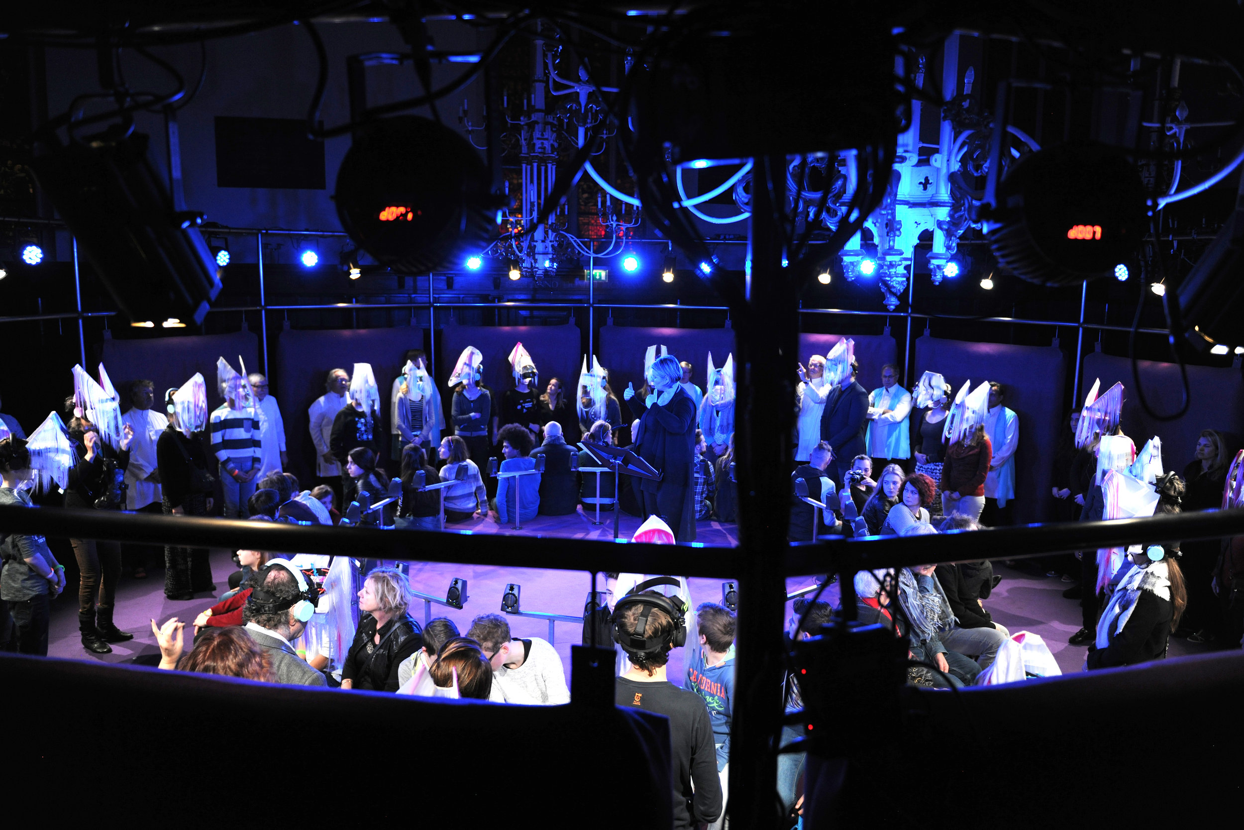 Together with VR group Wildvreemd, the goal was to create a theatrical experience where the audience is participating and singing together with professional opera singers. In this opera show 30 audience members put on VR helmets and play a game that they control with their voice. This dreamlike game asks them to sing, modulate, and harmonize.